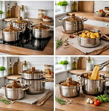 🔥 8- DELNI SET LONACA ✔ Premium INOKS 18/10 set sa 8 delova ✔ Vrhunska izrada od najboljeg INOKS-a čelik - garantovano da se neće držati hrane ✔ Poklopci od kaljenog stakla ✔ Termički zakova...
