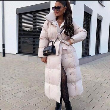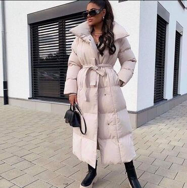 Ženska zimska jakna/kaput sa krznom - Boja: svetlo bež pudrasta nijansa - Dugačak model do kolena, toplo postavljen - Bogata krznena kragna i obrubi od krzna na kapuljači, rukavima i duž prednjeg ...
