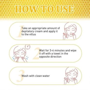 Jednostavna upotreba: Krema za uklanjanje dlačica sa lica je jednostavna za upotrebu. Nanesite odgovarajuću količinu kreme za depilaciju na gomilu kose, sačekajte 3-4 minuta, obrišite peškirom u suprotnom smeru i isperite vodom. Savršeno za kućnu upotrebu.