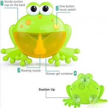 Ova igračka ima simpatičan oblik žabe 🐸, jarko zelene boje, atraktivan za decu i veoma lep ukras u kupatilu 🏡❤️.