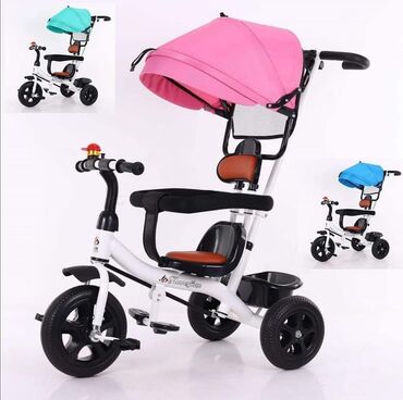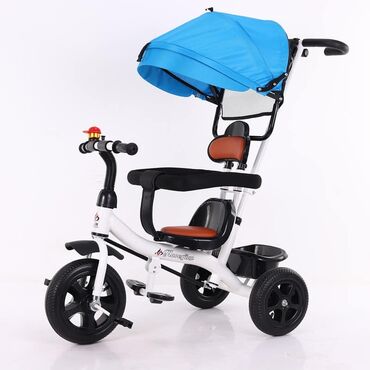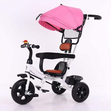 Jaka metalna konstrukcija cini osnovu ovog tricikla-guralice, gabaritnog izgleda cija je duzina oko 90 cm, a visina preko 1m. Plasticni delovi su izradjeni od jake plastike koja je otporna na atmosferske prilike I ne bledi na suncu. Tenda detetu pruza zastitu od sunca i vetra, a mekano sediste dodatno omogucava bezbednu voznju za decu mladjeg uzrasta. Tenda je izradjena od jakog lanenog platna