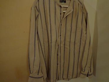 Bela prugasta kosulja,pamucna,sa dugim rukavima,lepa,elegantna,velicine L,jako neobicna sa ruskom kragnom,nova,nikad obucena!Cena je niza od kupovne i povoljna!