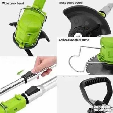 Oglas obuhvata više proizvoda – svaki je opisan zasebno: 1) Trimer AGM (benzinski) - Tip: motorni trimer sa dvostrukom ručkom (bicikl ručke) i najlonskom glavom - Istaknuto: „očuvan i potpuno ispr...85 RSD