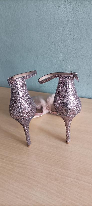 - Boja i finiš: puder-ružičasta osnova sa bogatim ružičasto-srebrnim šljokicama na peti, spoljnom strani i kaiševima