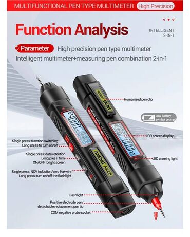 ANENG A3006 Visokoprecizni digitalni multimetar u obliku olovke - Višenamenski sa merenjem napona, struje, otpora i dioda, veliki LCD ekran sa pozadinskim osvetljenjem, radi na baterije (AAA) - Idealno za otklanjanje električnih problema, precizna merenja|Elegantan crni dizajn|Drška za lako držanje