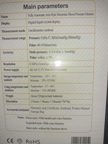 APARAT ZA MERENJE PRITISKA ZA NADLAKTICU .Karakteristike na slikama