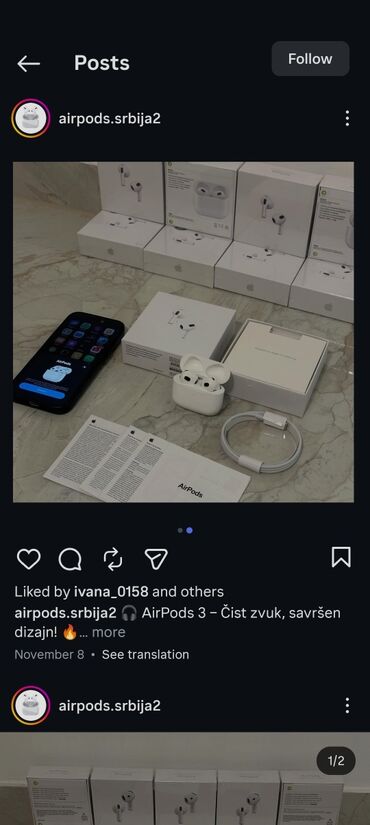 Dizajnirano od strane Apple u Kaliforniji. Kompatibilno sa iPhone, iPad, Apple Watch i Mac uređajima; automatsko prebacivanje između Apple uređaja putem iCloud naloga.