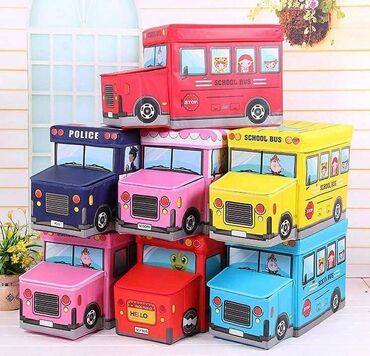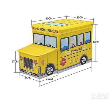 Veoma praktičan dečiji tabure u obliku autobusa, sa kutijom za igračke i sitnice.
