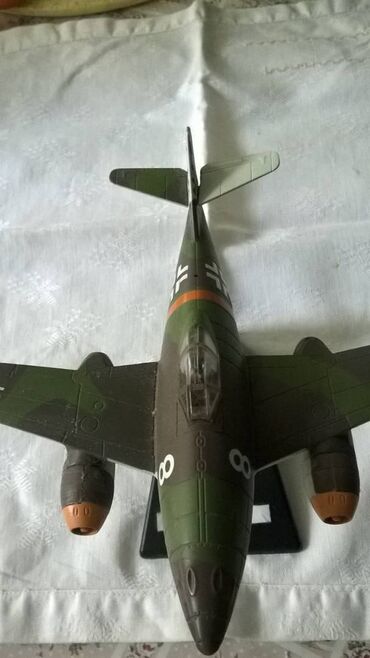 Avion Amercom MesserschmittME-262, Kina, naopako zalepljen pa zafarban deo zadnjeg krilca, postolje nije original