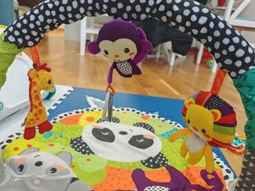 Zippy mat Animal hopscotch play mat,duz.180,sir.max/min.83/60 cm.2 moda rada,pritiskom broja cuje se 8 glasova zivotinja sa slika i 8 melodija i svetli led dioda.Baterije: 3 x 1.5V “AA”(Nisu ukljuc...1 000 RSD