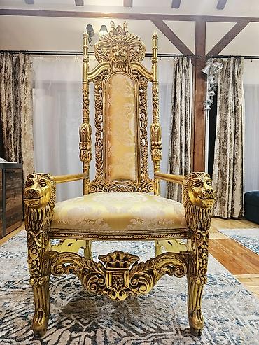 Barokni tron u pozlati ๐Ÿ‘‘ Impozantan, ruฤno rezbaren tron sa luksuznim