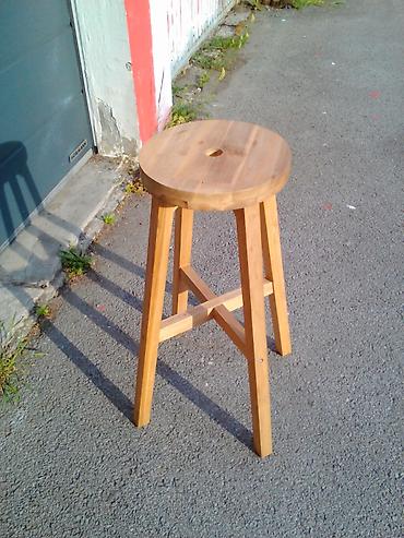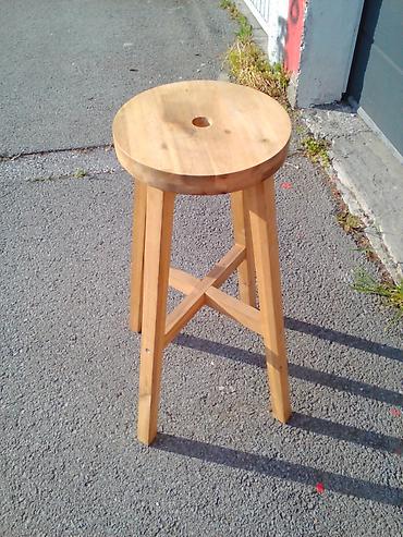 KVALITETNA barska stolica od punog drveta, visina 70 cm, prečnik sedišta 28, jaka i stabilna (nosivost 110 kg), vrlo malo korišćena, KAO NOVA.