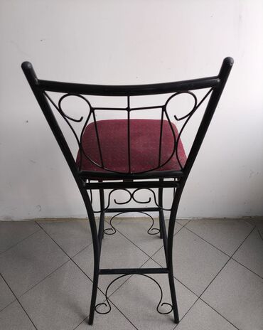 - Konstrukcija: čelični/metalni ram u crnoj boji, sa dekorativnim kovanim detaljima na naslonu i nogarama.