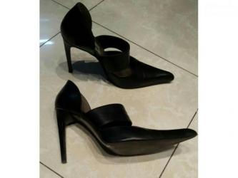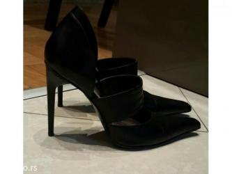 Elegantne crne salonke/štikle sa vezivanjem oko zgloba i ukrasnim bisernim narukvicama na risu. - Materijal: meka eko antilop tkanina spolja, glatka bež postava. - Oblik: špicasti vrh, zatvoren...