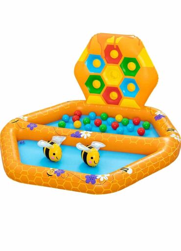 Dečiji bazen na naduvavanje sa motivima pčela i košnice. Poseduje mali tobogan i dolazi sa šarenim plastičnim lopticama za igru. Idealan za zabavu u dvorištu ili na terasi tokom toplih dana.