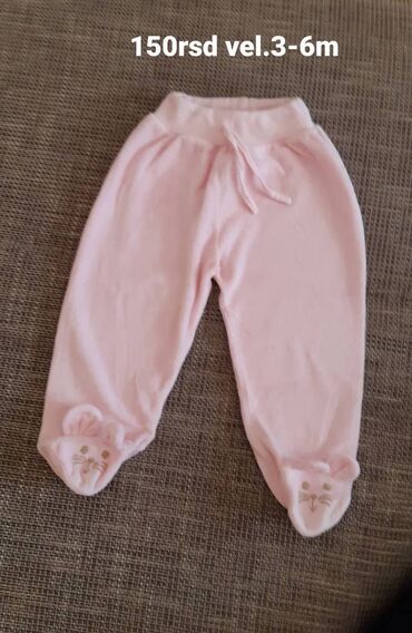Dečje pantalone – roze, brend Smile - Veličina: 74 (oko 9 meseci), oznaka na etiketi „6“ vidljiva na slikama - Materijal: mekani pamučni trikotaž (elastična tkanina, prijatna za kožu) - Kroj: ravn...