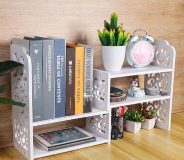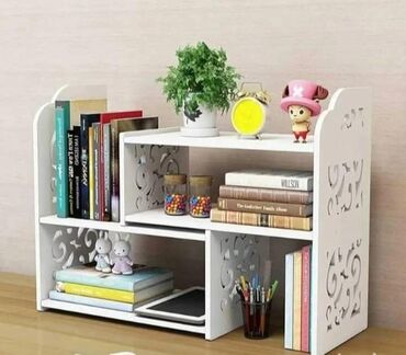 Ova elegantna i praktična polica savršena je za organizaciju knjiga, sveski, ukrasa i kancelarijskog pribora. Izrađena od kvalitetnog materijala sa dekorativnim rezbarijama, idealno se uklapa u radni sto, dečiju sobu ili kancelariju. Polica sadrži više pregrada koje omogućavaju pregledno skladištenje i istovremeno štede prostor.