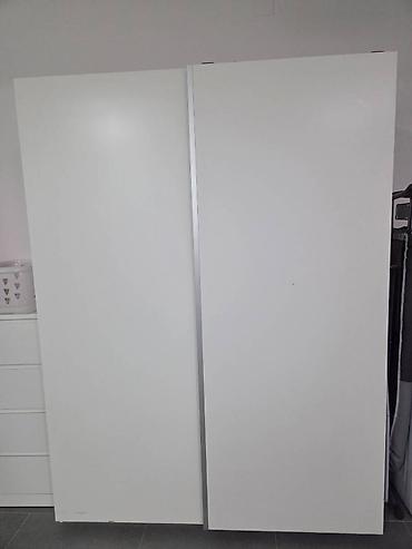- Dvokrilni ormar sa kliznim vratima, moderan minimalistički dizajn, bela mat površina