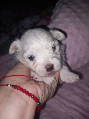 Rasa: beli štenac malog rasta (tipa maltezer/bishon)