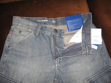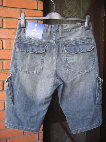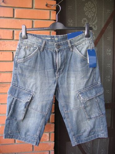 BermudeC&A Denim muske bermude od teksasa, velicina 32 (obim struka 84 cm, dubina napred 36 cm, pozadi 38 cm, duzina nogavica od sava izmedju nogu 37 cm) dva dzepa napred, dva pozadi i dva sa strane (pozadi i sa strane se kopcaju patent drikerima) na slicu zip, novo-nekorisceno sa etiketom
