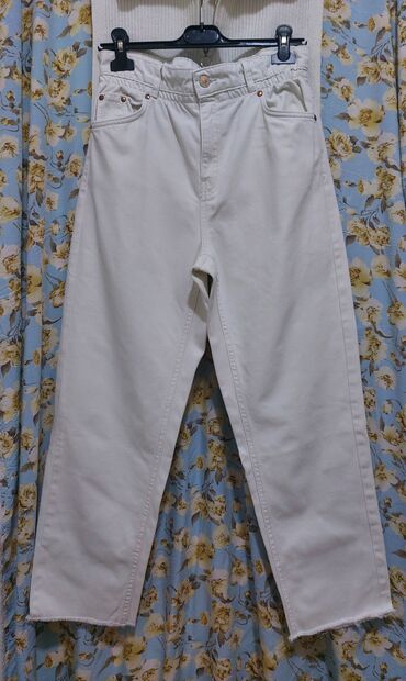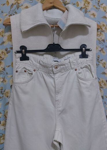 ■Bershka■ za 38/M "straight". Duboke, bele farmerke od jakog teksasa. Dužina nogavice 65cm, struk visok po. 36cm do 40cm.