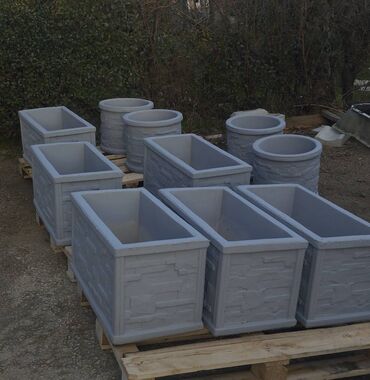 - Prednosti: masivne i stabilne, otporne na vremenske uslove, ne prevrću se lako; neutralna siva se lako farba po želji