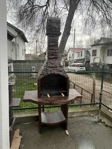 Vrtni roštilj/pečenjara od dekorativnog betona sa dimnjakom. - Materijal: armirani dekorativni beton sa teksturom prirodnog kamena, sivo–mermerni efekat. - Konstrukcija: masivno ložište sa svodom ...