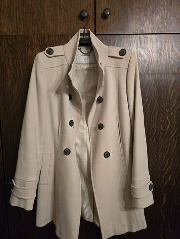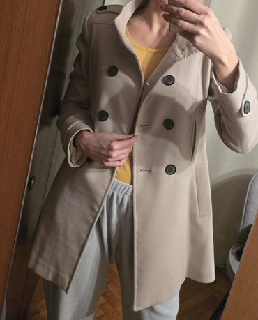 ZARA ženski klasični bež treč kaput (trench) - Duplo kopčanje na dugmad (dvoredno) - Pojas sa metalnom kopčom i rupicama za podešavanje - Naramenice (epolete) i rever kragna - Kaiševi na rukavima ...