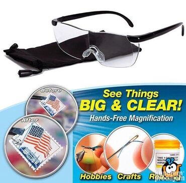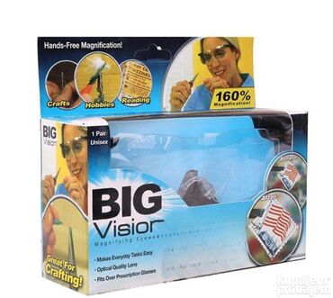 Big Vision lupa naočare sa povećanjem od 160 % omogućavaju vam da vidite svaki detalj u kristalno visokoj definiciji, bez izobličenja. Funkcionišu kao lupa, a pritom imate slobodne ruke. Mogu se nositi preko dioptrijskih naočara, kontaknih sočiva ili sunčanih naočara. 👓🔍