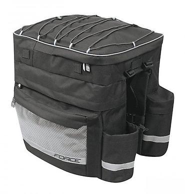 BISAGE TRODELNE FORCE TARGET 32 LIT | BISAGE TRODELNE FORCE TARGET 32l Bisage za zadnji nosač, montažne trake za vezivanje na zadnji nosač Dva velika i dva mala bočna džepa sa zipom Dva džepa na vrhu bisaga Dva džepa sa strane - jedna otvorena za flašicu i jedan sa zipom Na vrhu bisaga elastični kaiševi za vezivanje Dno bisaga je ojačano Kaiš za stavljanje zadnjeg svetla, reflektujući elementi na torbi Visina 43 cm, dužina 40 cm, širina 43 cm Ukupna zapremina bisaga je oko 32 litra Težina 1530 gr, maksimalna nosivost 15 kg Prikazane vrednosti su približne Šifra: 896341