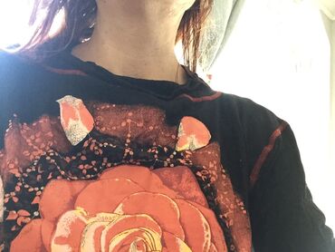 Crni, plisani bodi sa sitnim detaljima srebrnog pa je malo efektniji nego jednostavan crni pliš. Dug rukav, izrez četvrtast, S veličina, dobijen na poklon, možda dva puta obučen.