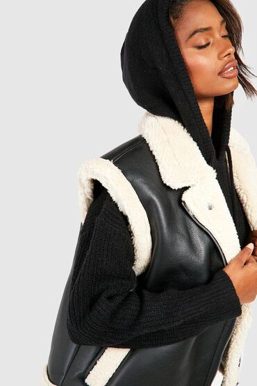Ženska prošivena dugačka prsluk-jakna sa kapuljačom i krznenim obrubom. - Dužina do sredine butine, blago strukiran kroj - Topla, lagana i punjena, sa horizontalnim panelima za bolju termoizolacij...