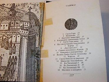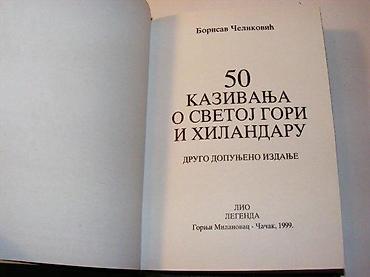 Borisav ČelikovićPedeset kazivanja o Svetoj Gori i HilandaruIzdavač: Lio Legenda, G. Milanovac-Čačak, 1999. Drugo dopunjeno izdanjeTvrd povez, 158 str, 18 cm, ilustrovano crno belo, posveta na predlistu, pečat na naslovnom listu i par mesta u knjizi. Tri odvojena lista zalepljena selotejpom i tri odvojena lista. Stanje dobro očuvano Sveta Gora je carstvo bez krune, drzava bez vojske, zemlja bez zena, bogatstvo bez novca, mudrost bez skole, kuhinja bez mesa, molitva bez prestanka, veza sa nebesima bez prekida, slavopoj Hristu bez umora, smrt bez zaljenja -Sv. Nikolaj