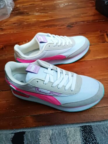 Patike za trčanje i svakodnevno nošenje - Modeli: crna varijanta sa diskretnim „Zoom“ obeležjem i mrežastim gornjištem; rozo‑ljubičasti ombre prelaz sa belim bočnim logom. - Veličine: 36–41 (naved...