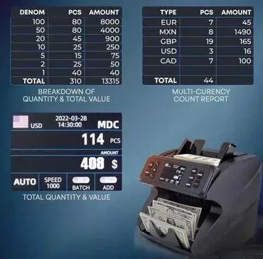 Mašina je dizajnirana za multivalutnu upotrebu i za poslovne potrebe, što je čini idealnim rešenjem za banke, menjačnice, i prodavnice.