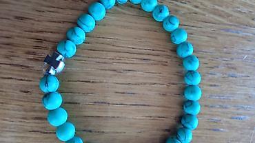 Kalist kamene brojanice od prirodnog sodalita, sa blagoslovom SPC