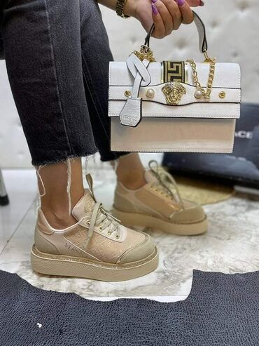 Bershka patike – model sa povišenim đonom - Boja: krem/bela sa bež panelima - Brend: Bershka (logo na đonu i ulošku) - Veličina: 36 (dužina uloška 23 cm; na etiketi označeno 23,3/23,4) - Gornjište...