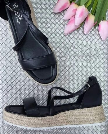 Crne ženske sandale na visoku blok štiklu - Elegantne crne sandale sa remenčićem oko članka i kopčom - Široka, stabilna blok štikla - Dve ukrštene trake preko risnog dela stopala - Otvoren prst (o...