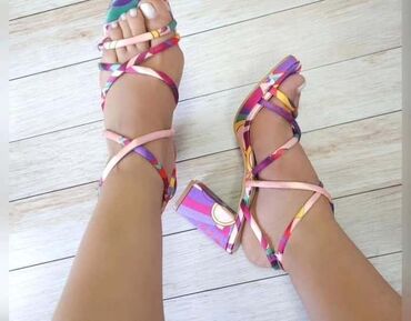 Ženske sandale sa visokom štiklom i otvorenim prstima. - Brend: Keanli (otisak na ulošku) - Materijal uloška: prava koža (oznaka “Vera Pelle”) - Dizajn: kombinacija zebra pruga (crno‑bele) i detal...