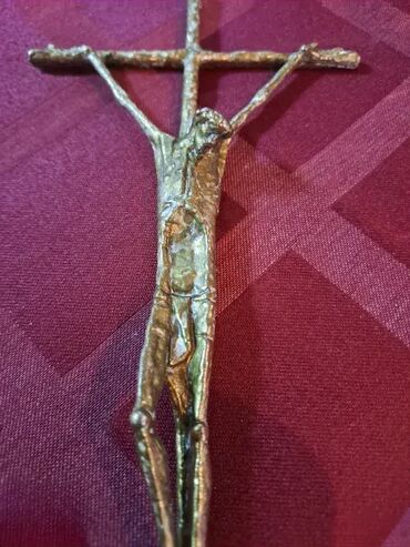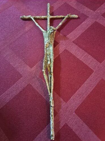Izuzetne dve zidne, bronzane skulpture Isusa Hrista koji levom rukom drzi krst sa podignutom desnom rukom. U dobrom stanju sa dobrom patinom. Visina vece 54cm i tezina 3,93kg a manja visina 40cm i ...