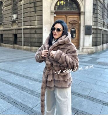 Prirodno krzno kaput – veličina L - Materijal: prirodno krzno, bogata, tamno‑braon nijansa sa prirodnom šarom - Kroj: klasičan, ravnog pada do ispod kukova - Kragna: široka, mekana - Postava: glat...