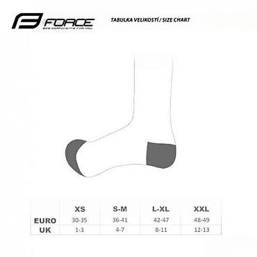ČARAPE FORCE LONG PRO, PLAVE S-M/36-41 | više biciklističke čarape FORCE pogodne za druge sportove veličina S-M odgovara EUR 36 - 41 / UK 4 - 7 štiti od modrica na cipelama (nastavak) visoko prozračan materijal označen u čarapu R i L. nerastegnuta visina je 17 cm visina potpetice 19 cm podeljena na čarapu R i L.