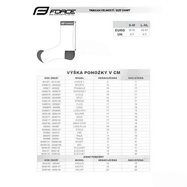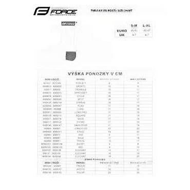 ČARAPE FORCE LONG PRO SLIM, PLAVE S-M/36-41 | više biciklističke čarape FORCE pogodne i za druge sportove gornji deo čarapa je sužen radi boljeg zatezanja i opkoljavanja stopala veličina S-M odgovara EUR 36 - 41 / UK 4 - 7 veličina L-KSL odgovara EUR 42 - 46 / UK 8 - 11 štiti od modrica od cipela (nastavak) visoko prozračni materijal označeno u R i L čarapu nerastegnuta visina je 23 cm visina potpetice 26 cm podeljen na R i L čarapu materijal: Najlon 85%, elastan 15%. upakovano u polietilenu kesu na FORCE kartici Šifra: 90090535