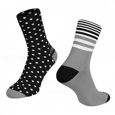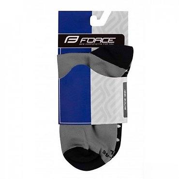 ČARAPE FORCE SPOT, CRNO-SIVE S-M/36-41 | više biciklističke čarape FORCE pogodne za druge sportove veličina S-M odgovara EUR 36 - 41 / UK 4 - 7 štiti od modrica na cipelama (nastavak) visoko prozračan materijal označen u čarapu R i L. nerastegnuta visina je 16 cm visina potpetice 17 cm podeljena na čarapu R i L. materijal: najlon 85%, elastan 15% upakovano u polibag na FORCE karticiŠifra: 9009084