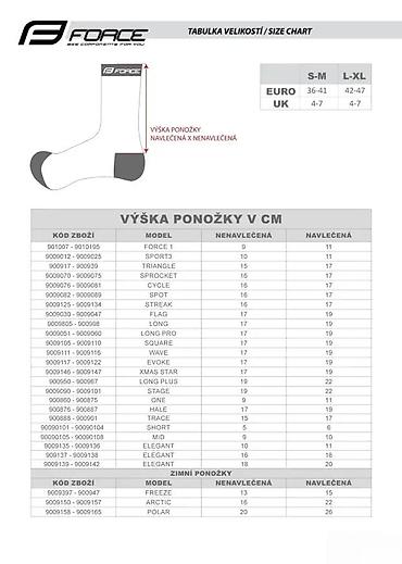 ČARAPE FORCE TRACE, CRVENE S-M/36-41 | duže biciklističke čarape FORCE pogodne i za druge sportove veličina S - M odgovara EUR 36 - 41 / UK 4 – 7 veličina L - XL odgovara EUR 42 - 47 / UK 8 – 11 štiti od modrica od cipela (instep) i pedala (stopala) ojačani zglob i ahilove delove tetive visoko dišući materijal, sofisticirana bočna ventilacija, podeljeno na R i L čarapu, nerazvučena visina je 15 cm materijal: 96% poliamid, 4% elastane spakovana u kesicu sa FORCE kartonom Šifra: 900898