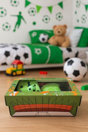 Unesite radost i sportsku energiju u svaki korak! Ovaj set veselih zelenih čarapa sa fudbalskim motivima dolazi u atraktivnoj poklon kutiji inspirisanoj stadionom, idealnoj za rođendane, praznike ili kao slatko iznenađenje.