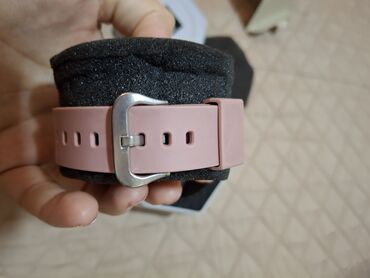 - Silikonska/rezinska narukvica u puder‑roze boji sa metalnom kopčom, više rupa za fino podešavanje