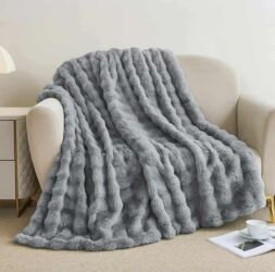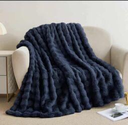 Mekano pleteno ćebe sa reljefnom “bubble” teksturom - Materijal: pliš/mikrofiber (somotasto mek na dodir, topao i lagan) - Tekstura: trodimenzionalni saćasti/okruglasti uzorak koji daje volumen i ...
