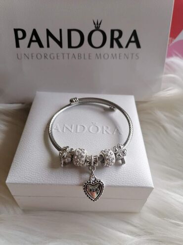 Elegantna narukvica od sterling srebra (925) sa zmijskim vezom. Glavna karakteristika je romantična kopča u obliku srca-katanca, ukrašena roze cirkonima i dodatnim malim priveskom-ključem. Veličina...
