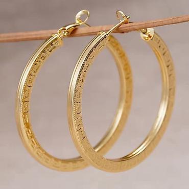hirurski celik minđuše – set od 3 para obruča - Model 1: klasični glatki obruči srednje debljine, visokog sjaja. - Model 2: obruči sa dekorativnim bordurama (geometrijski/grčki motiv) po spoljašn...